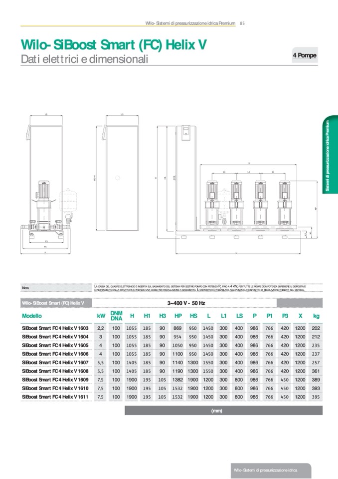 LA CASSA DEL QUADRO ELETTRONICO È INSERITA SUL BASAMENTO DEL SISTEMA PER GESTIRE POMPE CON POTENZA P