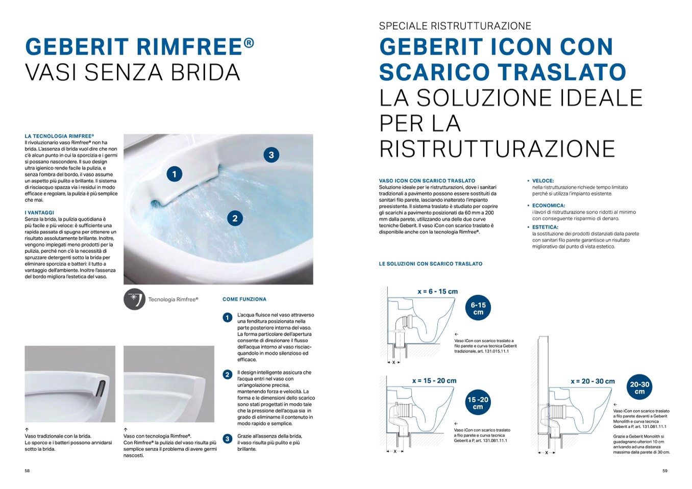 tecniche Geberit. Il vaso iCon con scarico traslato è