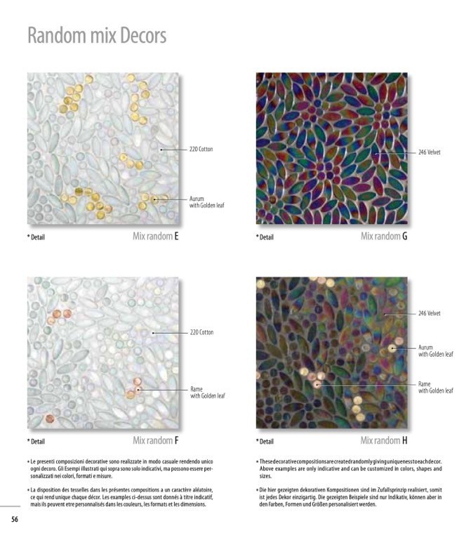 ist jedes Dekor einzigartig. Die gezeigten Beispiele sind nur Indikativ, können aber in