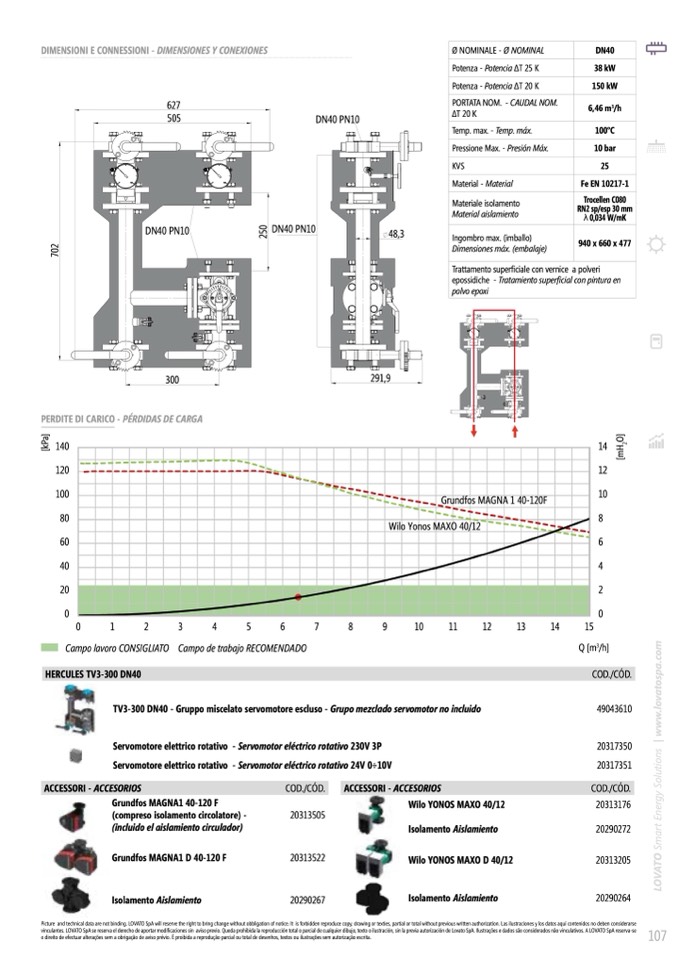 TV3-300 DN40 - Gruppo miscelato servomotore escluso - Grupo mezclado servomotor no incluido