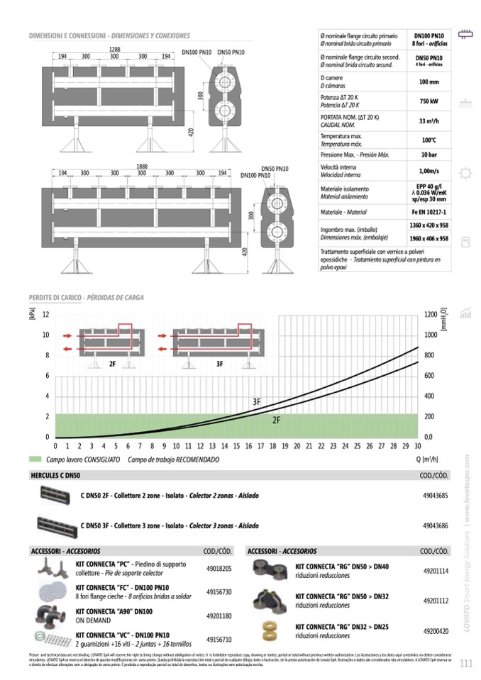 C DN50 3F - Collettore 3 zone - Isolato - Colector 3 zonas - Aislado
