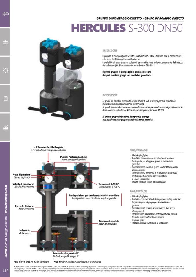 El grupo de bombeo mezclado Lovato DN50 S-300 se utiliza para la circulación