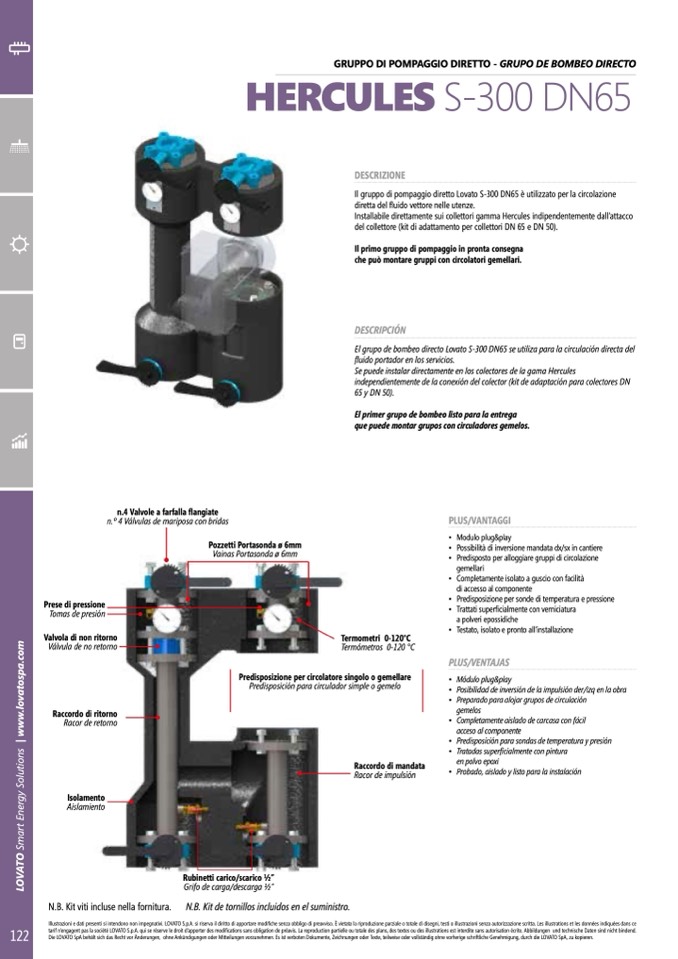 El grupo de bombeo directo Lovato S-300 DN65 se utiliza para la circulación directa del