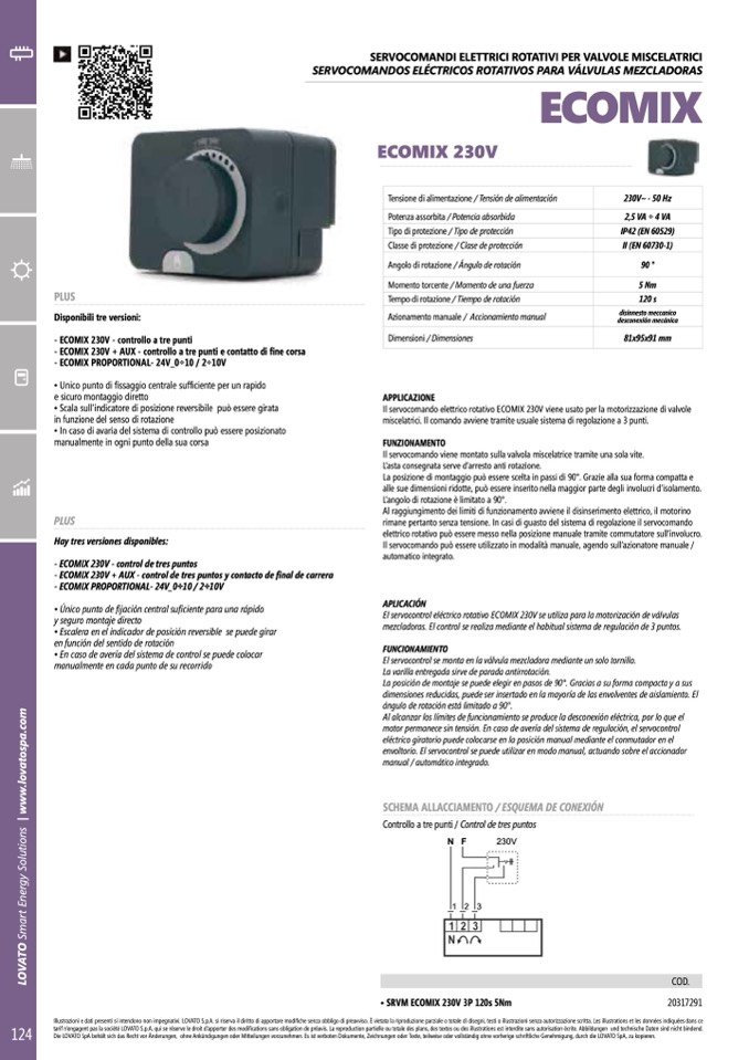 - ECOMIX 230V + AUX - controllo a tre punti e contatto di fine corsa