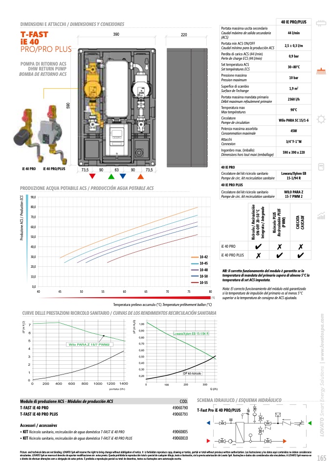 CURVE DELLE PRESTAZIONI RICIRCOLO SANITARIO / CURVAS DE LOS RENDIMIENTOS RECIRCULACIÓN SANITARIA