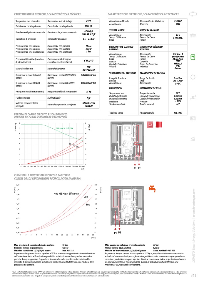 CARATTERISTICHE ELETTRICHE / CARACTERÍSTICAS ELÉCTRICAS