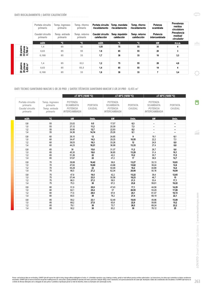 DATI RISCALDAMENTO / DATOS CALEFACCIÓN