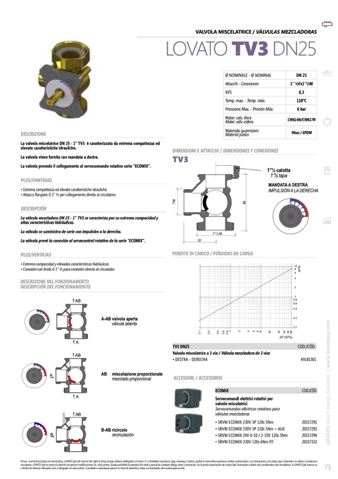 La valvola miscelatrice DN 25 - 1” TV3 è caratterizzata da estrema compattezza ed