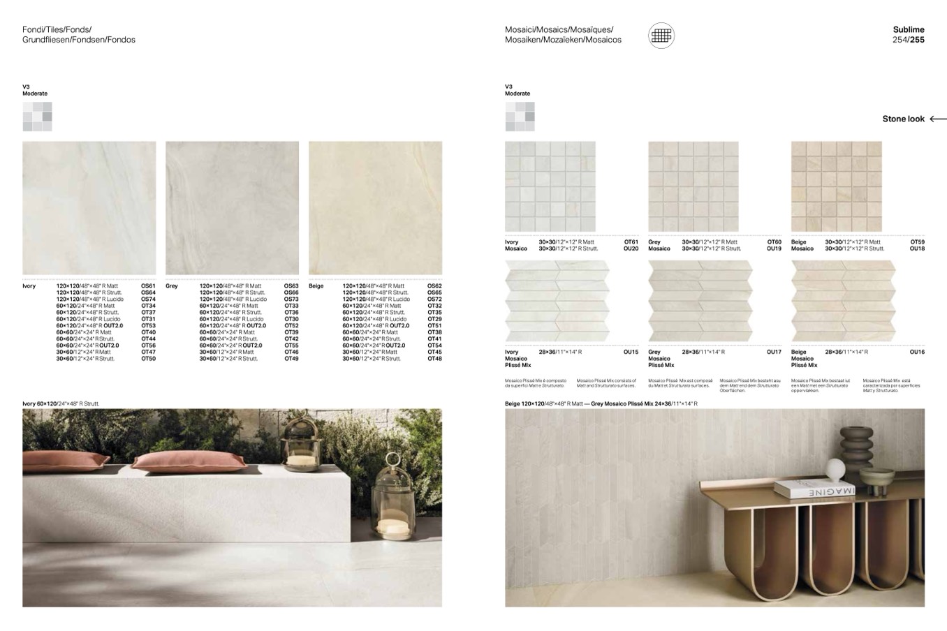 Beige 120×120/48"×48" R Matt — Grey Mosaico Plissé Mix 24×36/11"×14" R