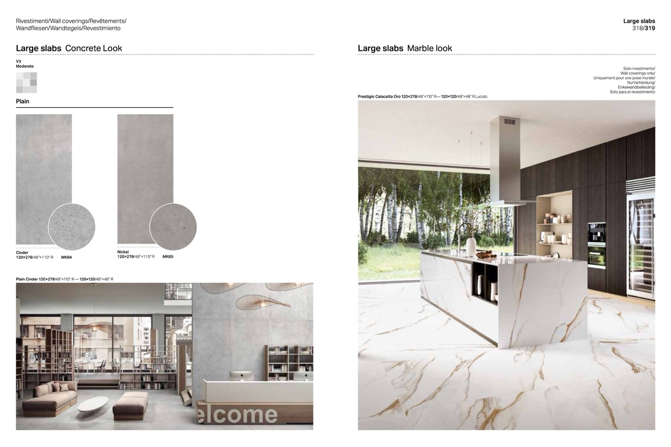 Prestigio Calacatta Oro 120×278/48”×110” R— 120×120/48”×48” R Lucido