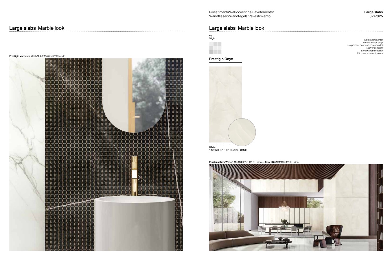 Prestigio Onyx White 120×278/48”×110” R Lucido ― Grey 120×120/48”×48” R Lucido