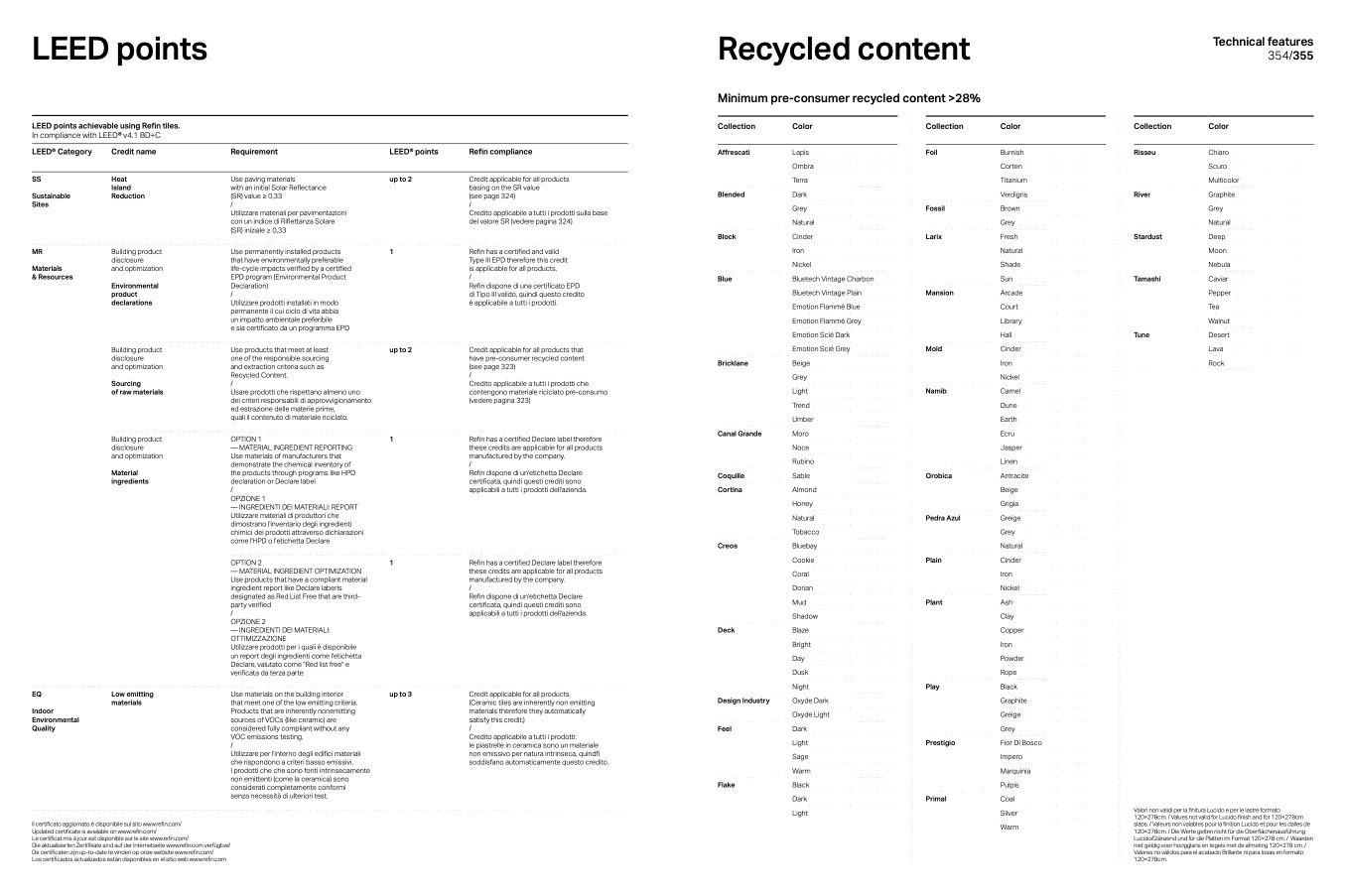 slabs. / Valeurs non valables pour la finition Lucido et pour les dalles de