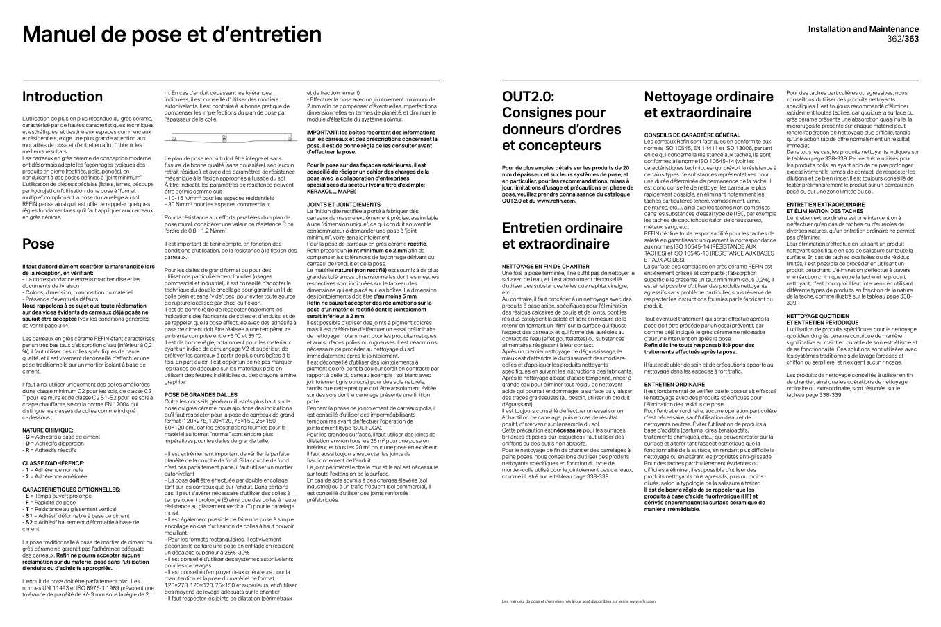 Les manuels de pose et d’entretien mis à jour sont disponibles sur le site www.refin.com