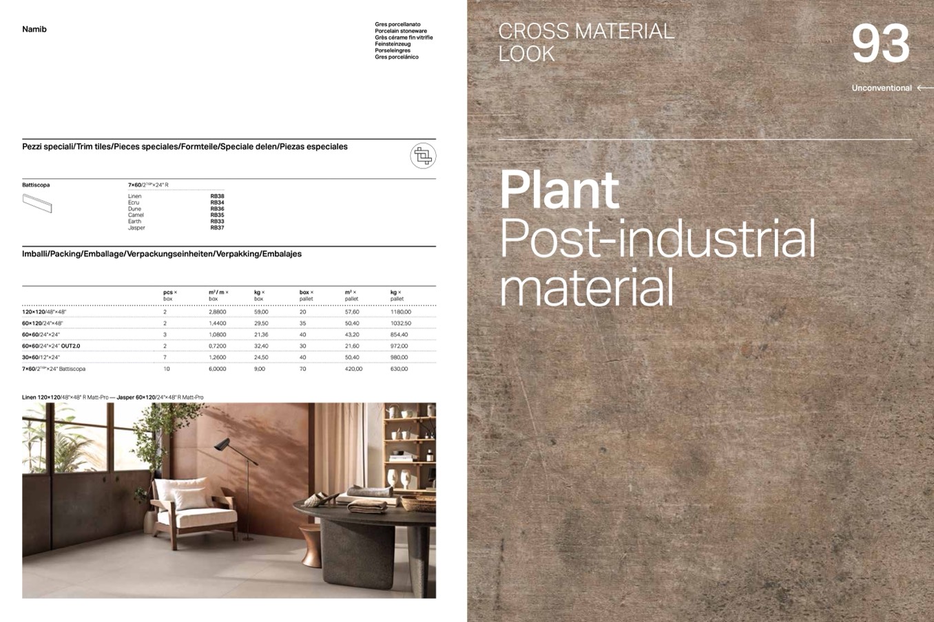 Linen 120×120/48"×48" R Matt-Pro — Jasper 60×120/24"×48" R Matt-Pro