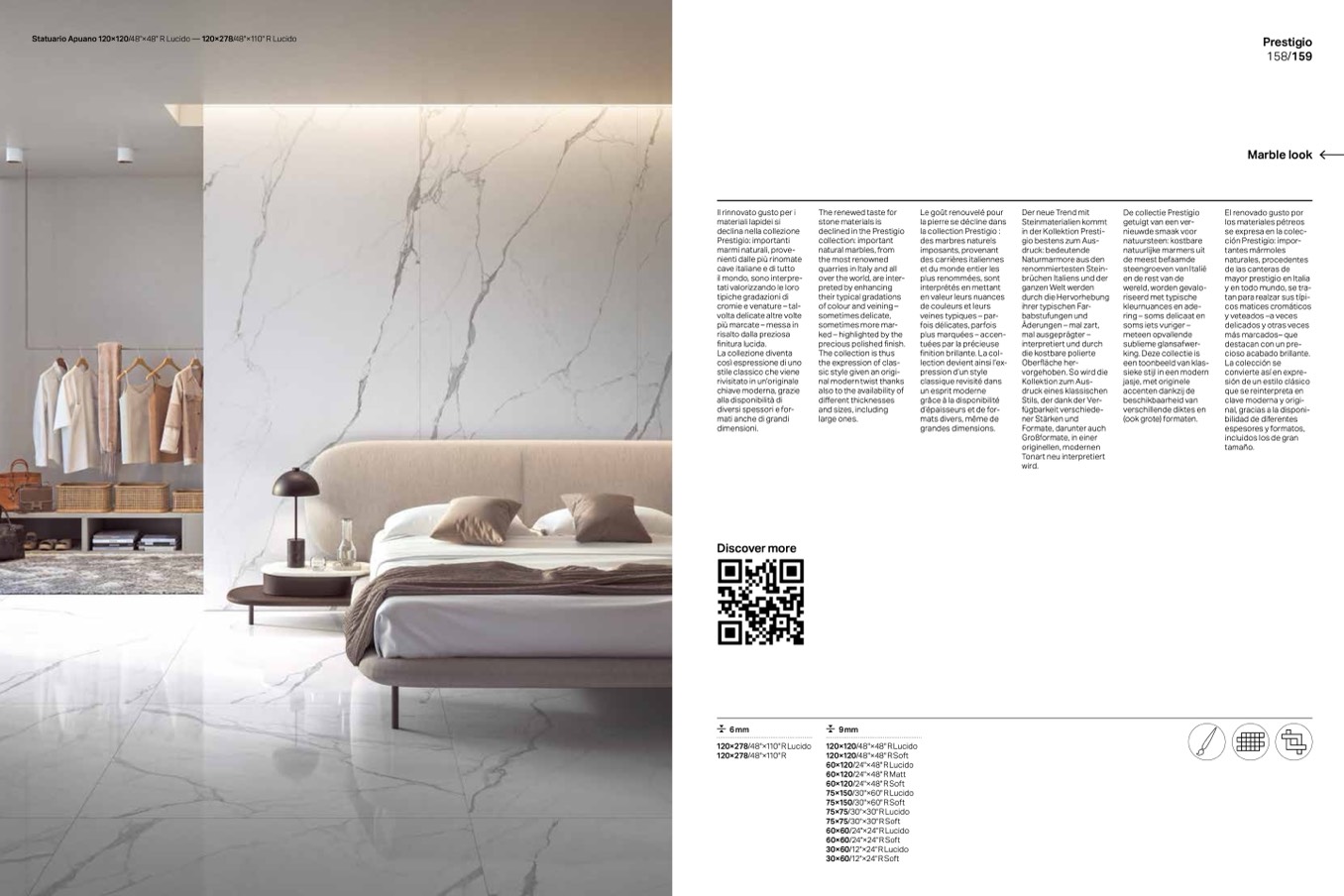 Statuario Apuano 120×120/48"×48" R Lucido — 120×278/48"×110" R Lucido