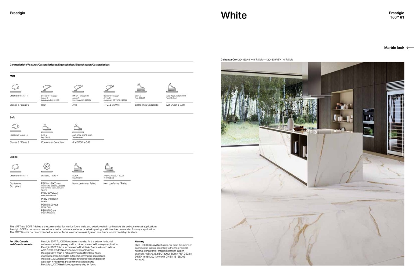 Prestigio SOFT finish is recommended for interior floors, walls, and exterior