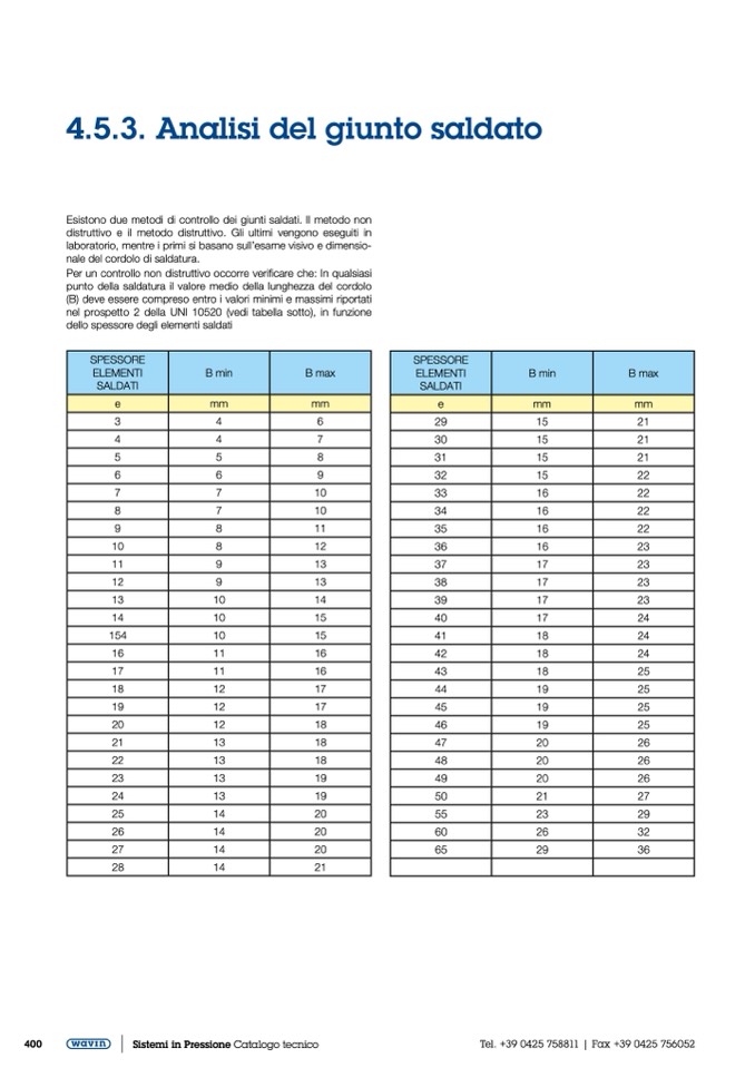 nale del cordolo di saldatura.