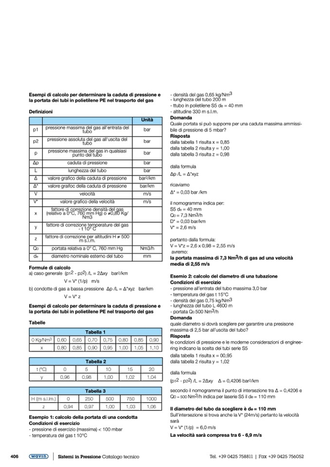 b) condotte di gas a bassa pressione Δp /L = Δ*xyz