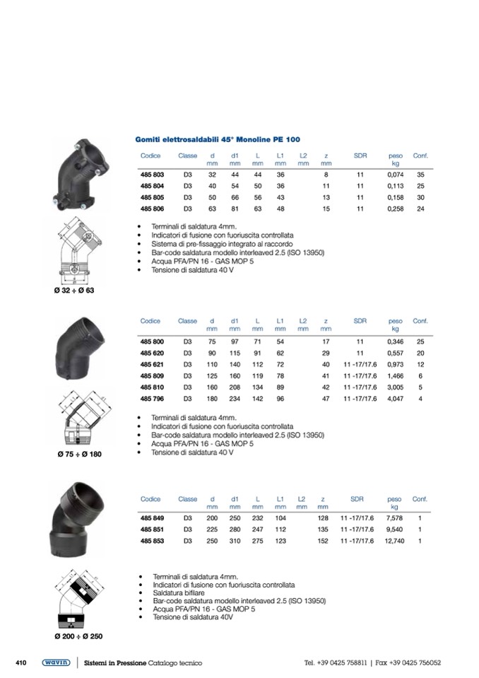 Gomiti elettrosaldabili 45° Monoline PE 100