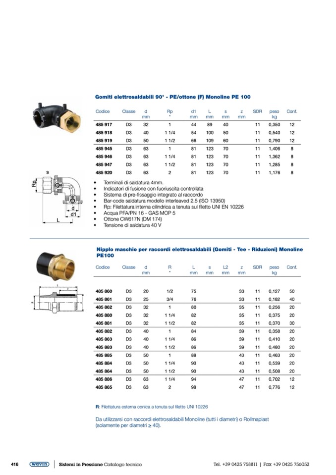 Da utilizzarsi con raccordi elettrosaldabili Monoline (tutti i diametri) o Rollmaplast