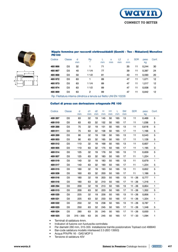 Collari di presa con derivazione ortogonale PE 100