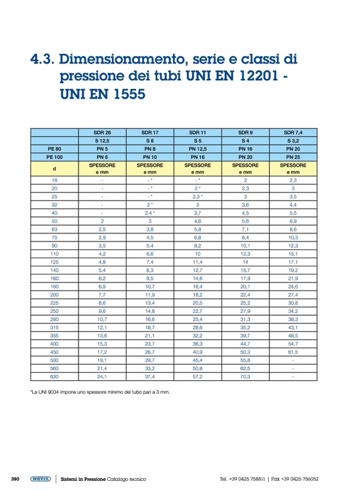 *La UNI 9034 impone uno spessore minimo del tubo pari a 3 mm.