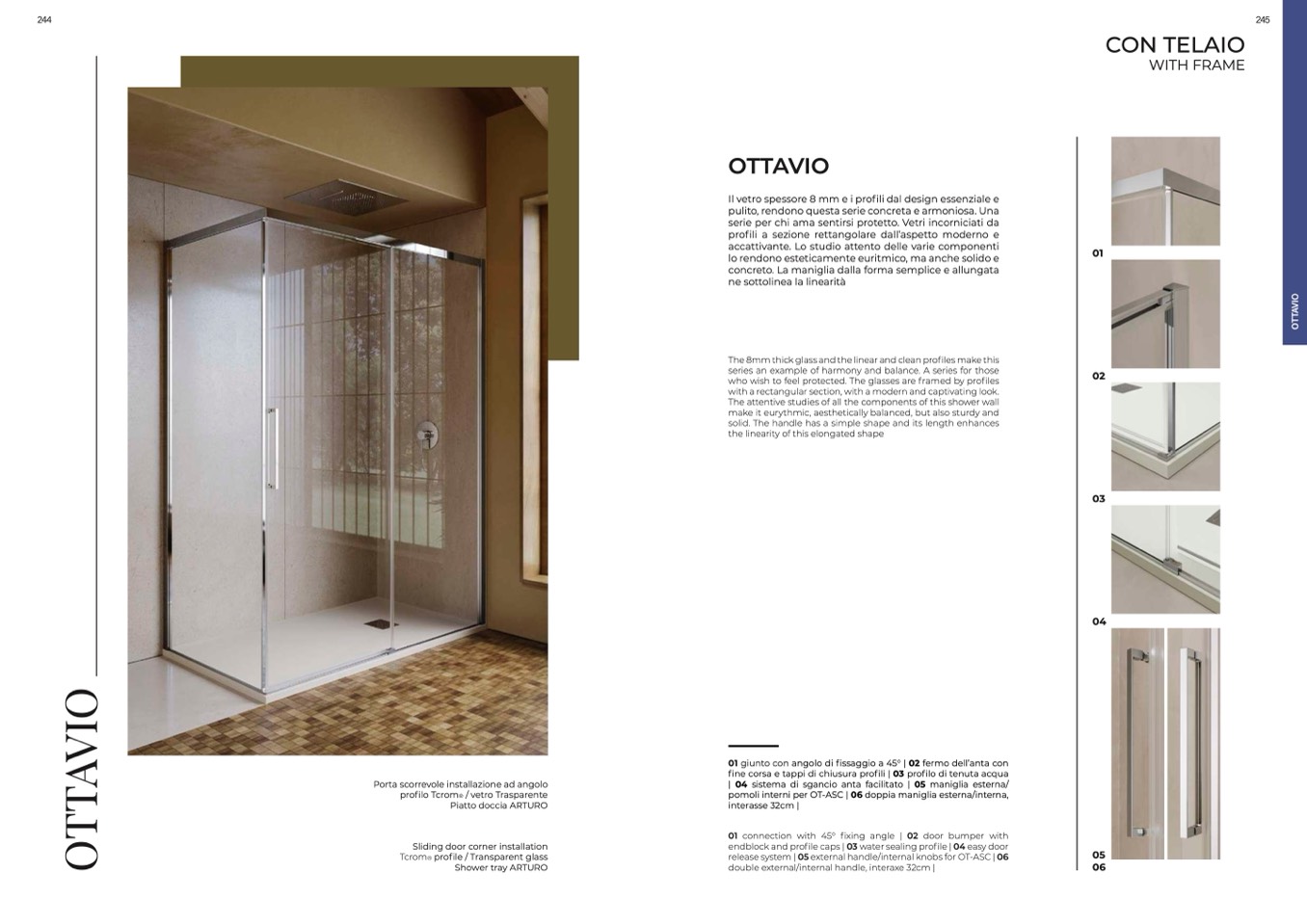 01 giunto con angolo di fissaggio a 45° | 02 fermo dell’anta con