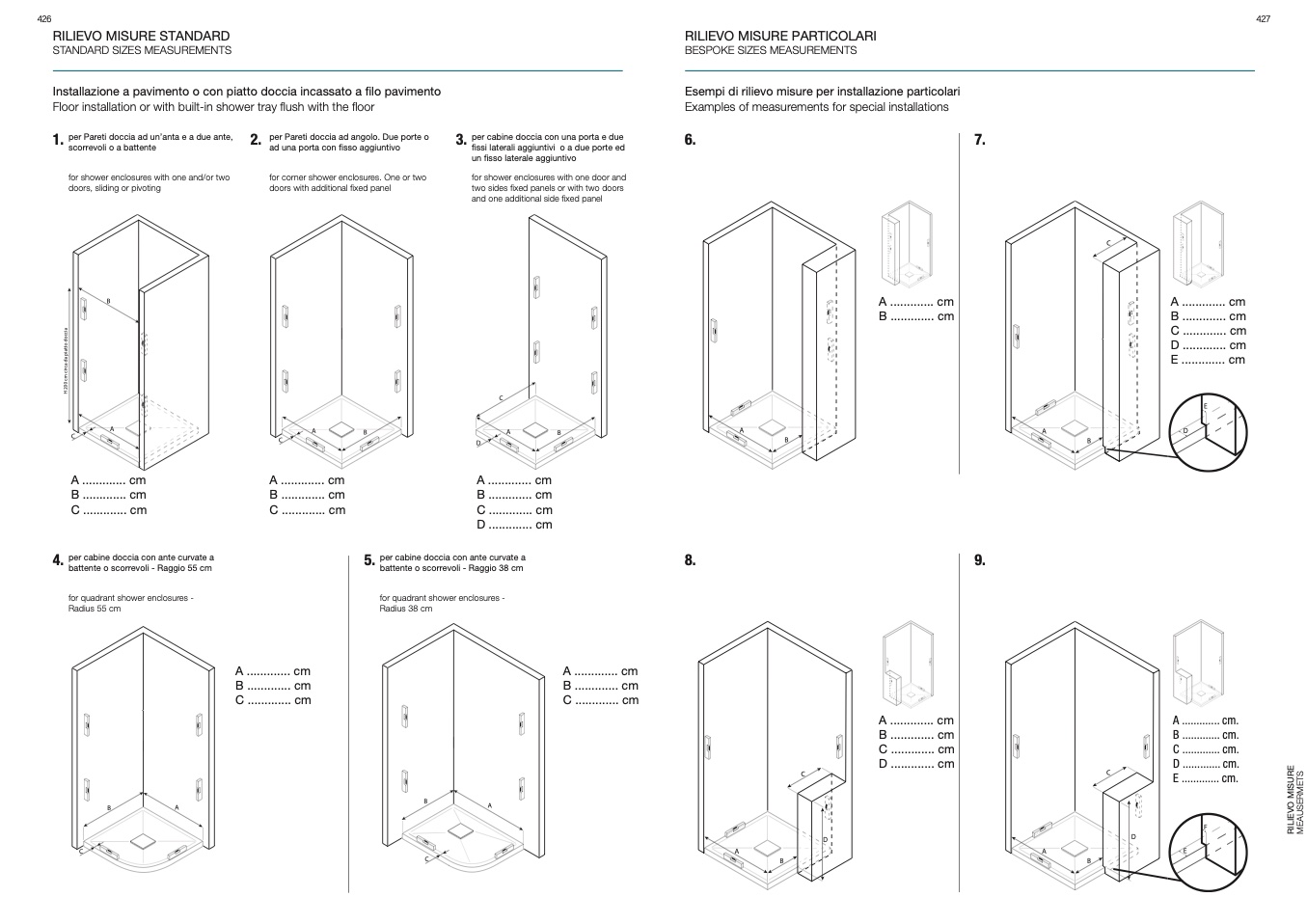 per cabine doccia con ante curvate a