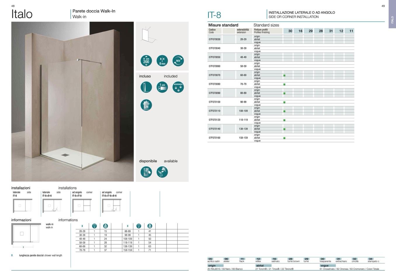 lunghezza parete doccia\ shower wall length