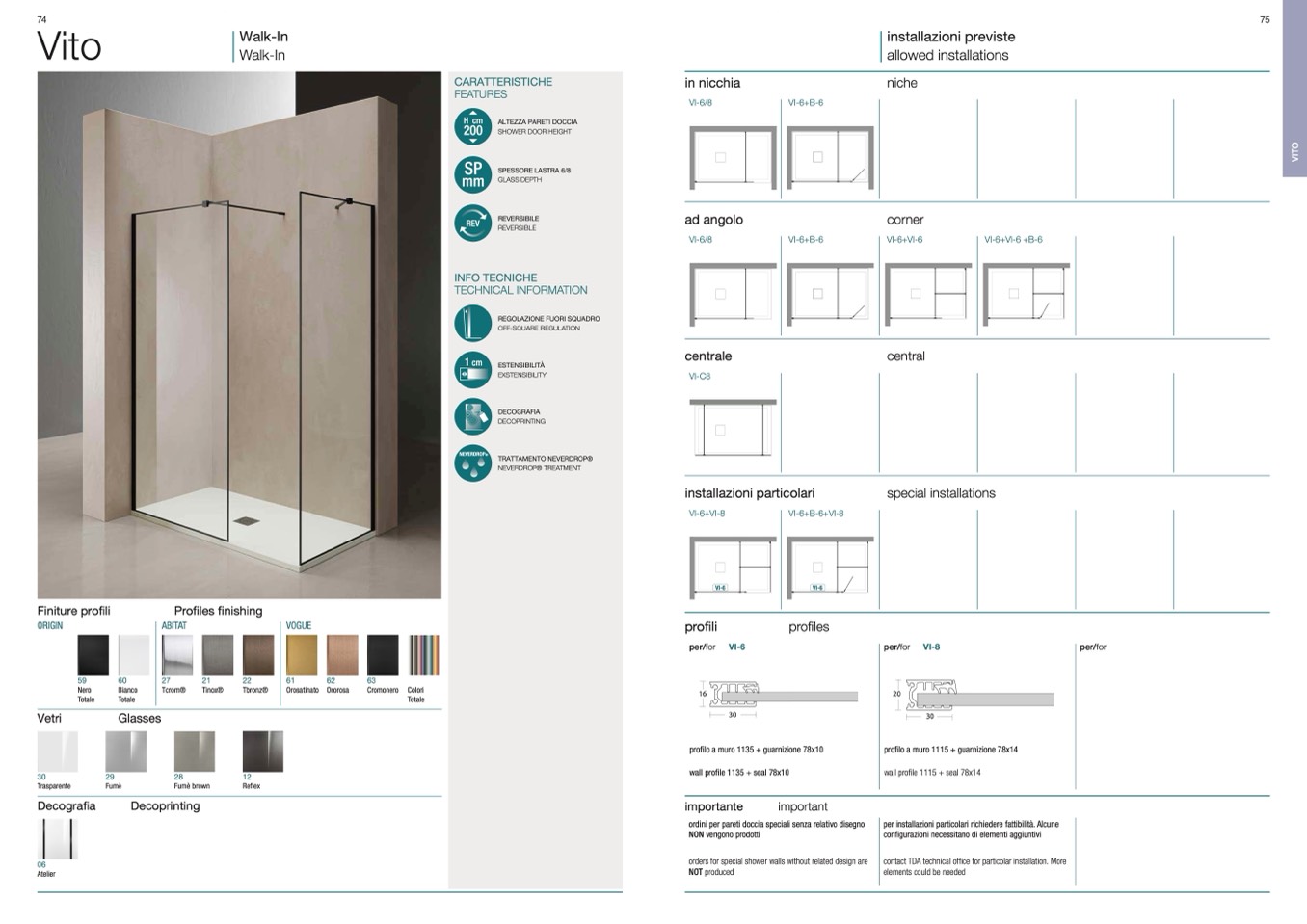 ordini per pareti doccia speciali senza relativo disegno
