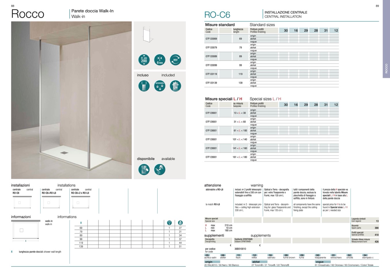 lunghezza parete doccia\ shower wall length