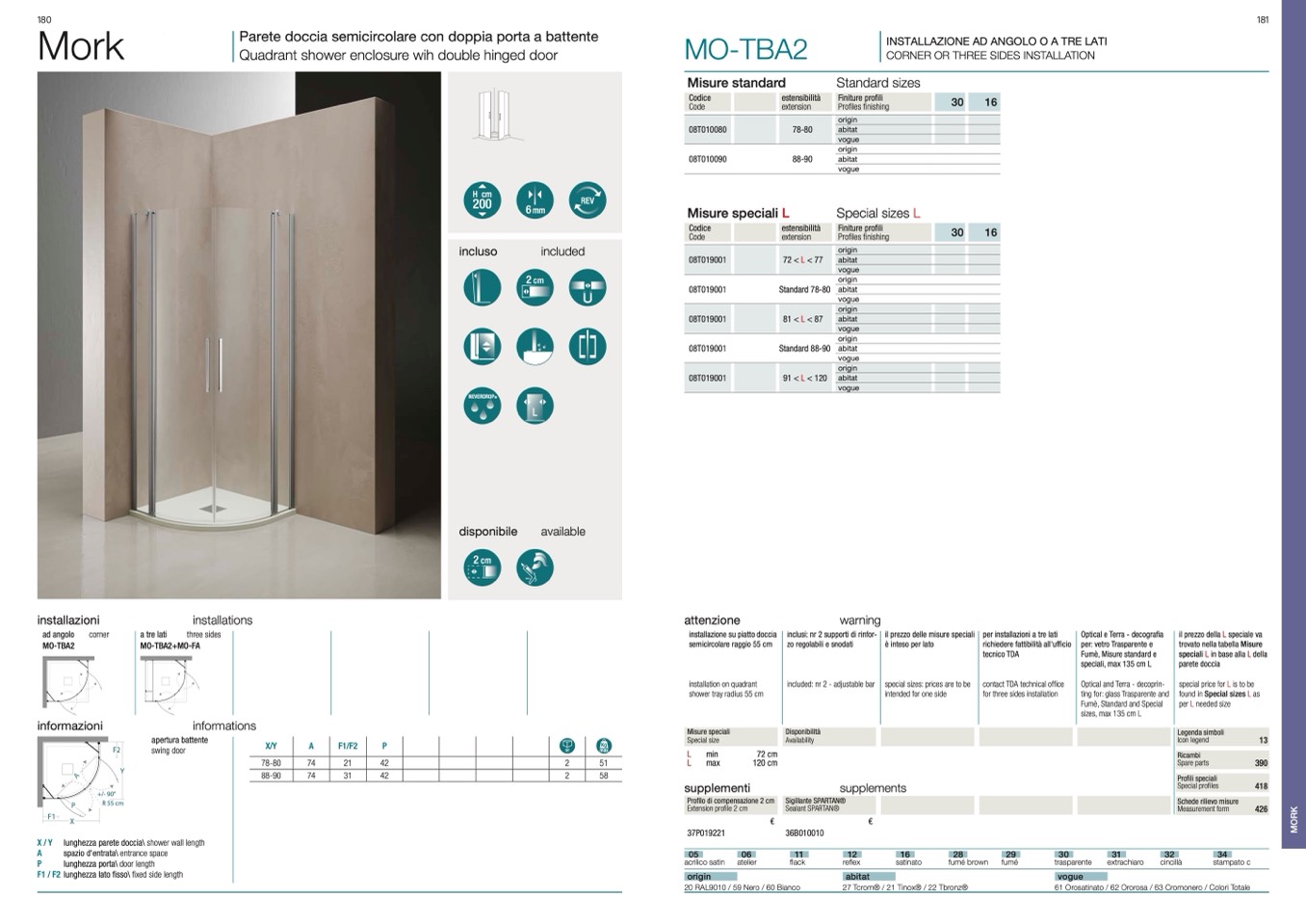INSTALLAZIONE AD ANGOLO O A TRE LATI