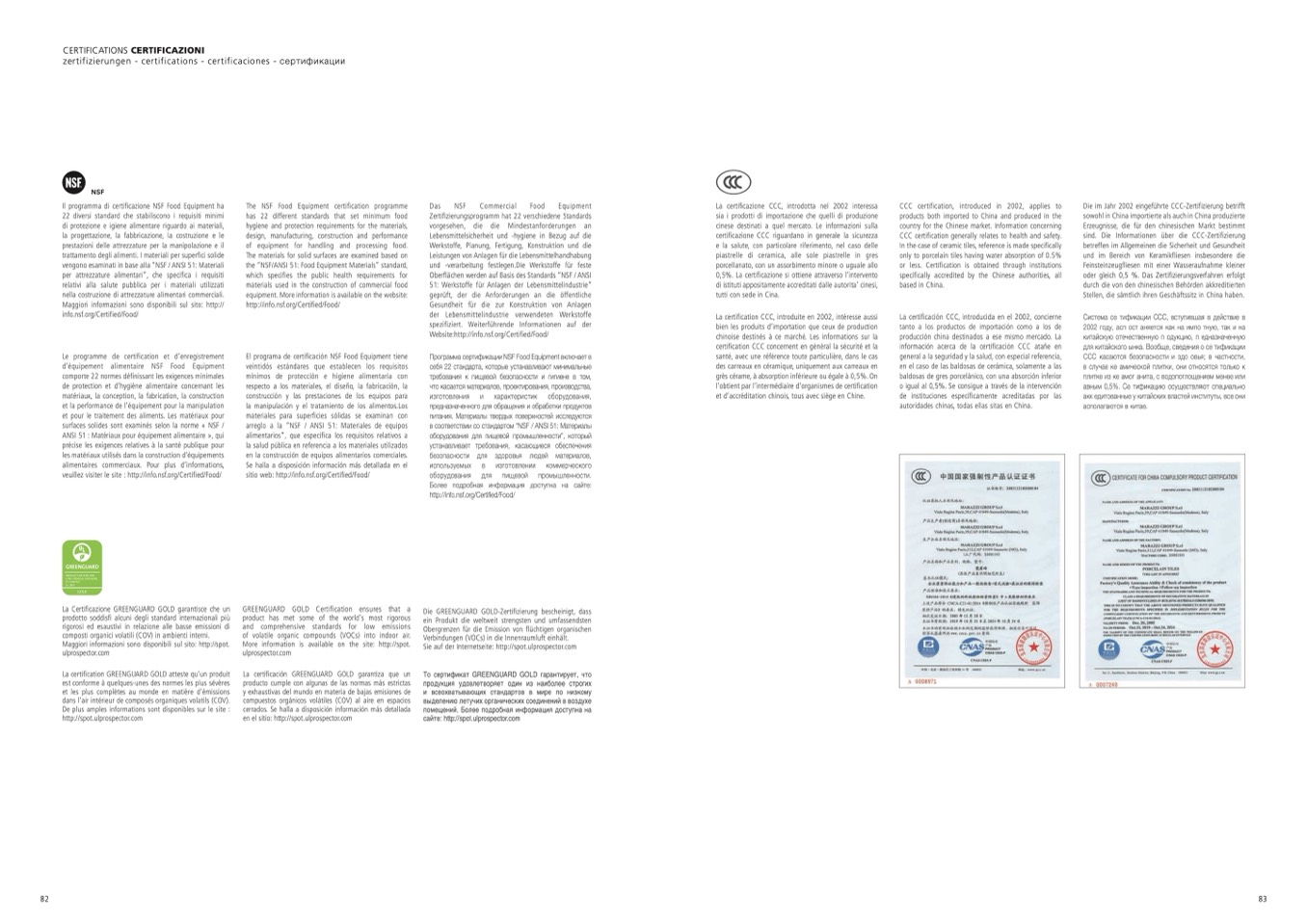 CERTIFICATIONS CERTIFICAZIONI
