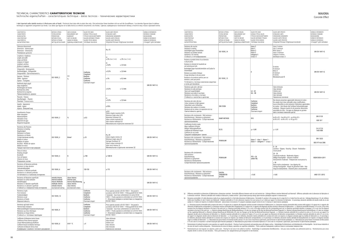 I dati riportati sulla tabella tecnica si riferiscono solo ai fondi. / Technical chart data refer to plain tiles only. / Die technischen Daten beziehen sich nur auf die Grundfliesen. / Les données figurant dans le tableau