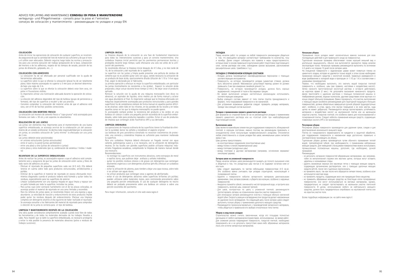 ADVICE FOR LAYING AND MAINTENANCE CONSIGLI DI POSA E MANUTENZIONE