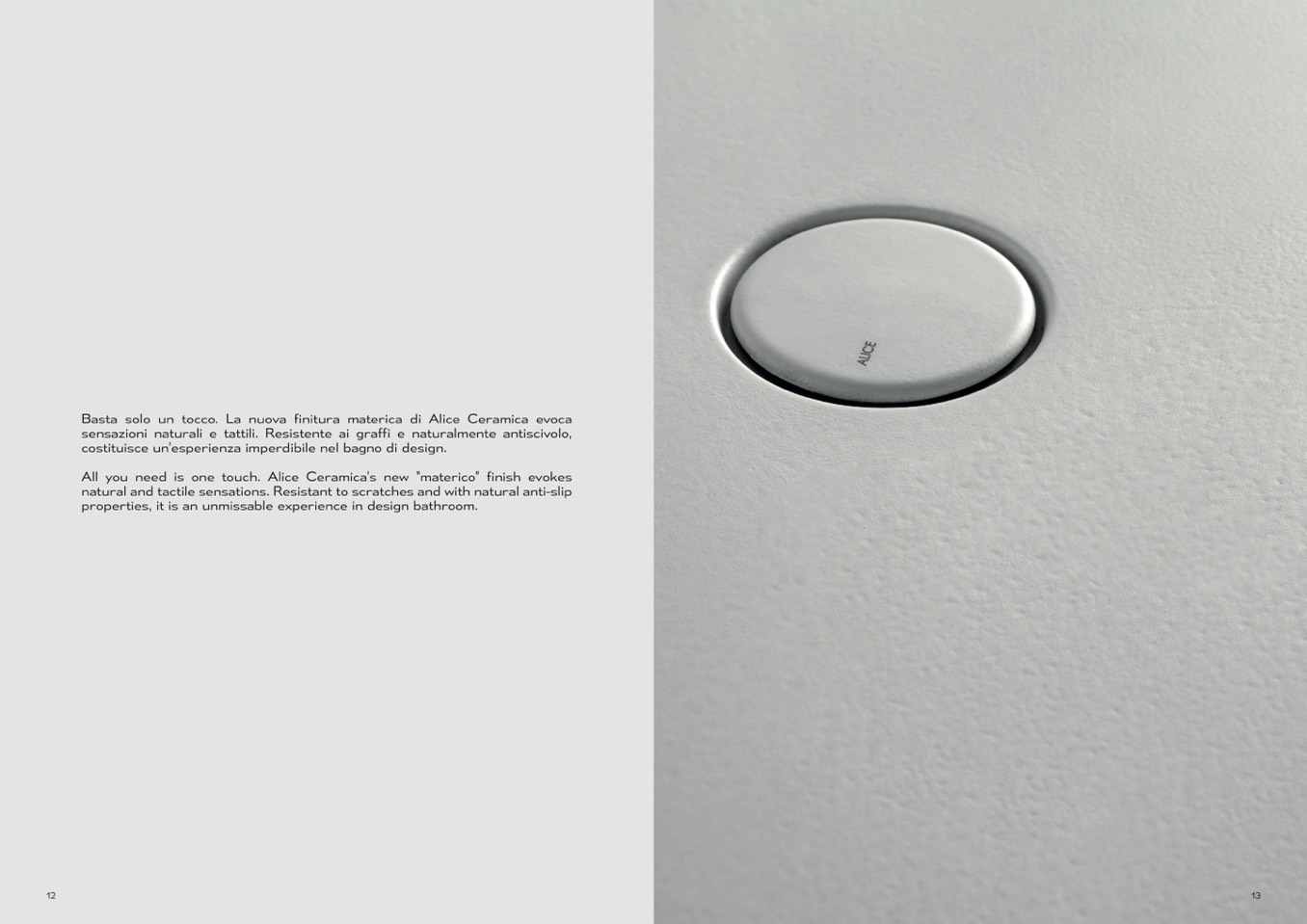 All you need is one touch. Alice Ceramica’s new “materico” finish evokes