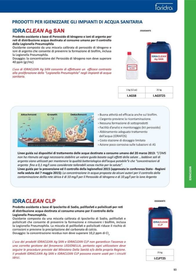PRODOTTI PER IGIENIZZARE GLI IMPIANTI DI ACQUA SANITARIA