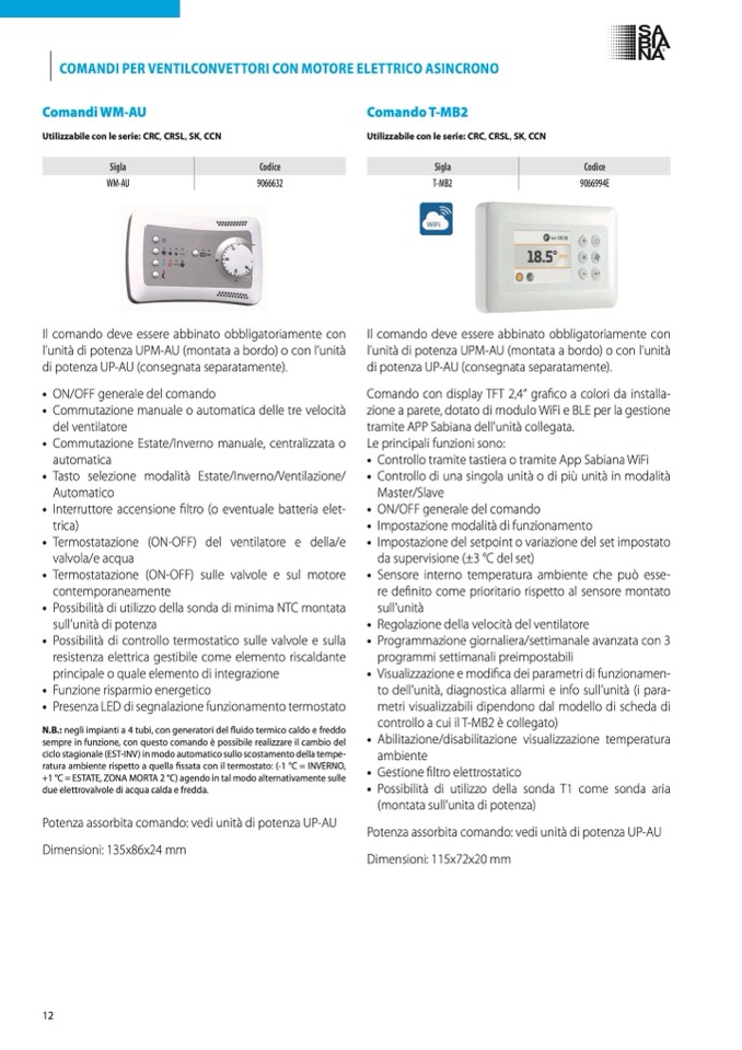 • Controllo tramite tastiera o tramite App Sabiana WiFi