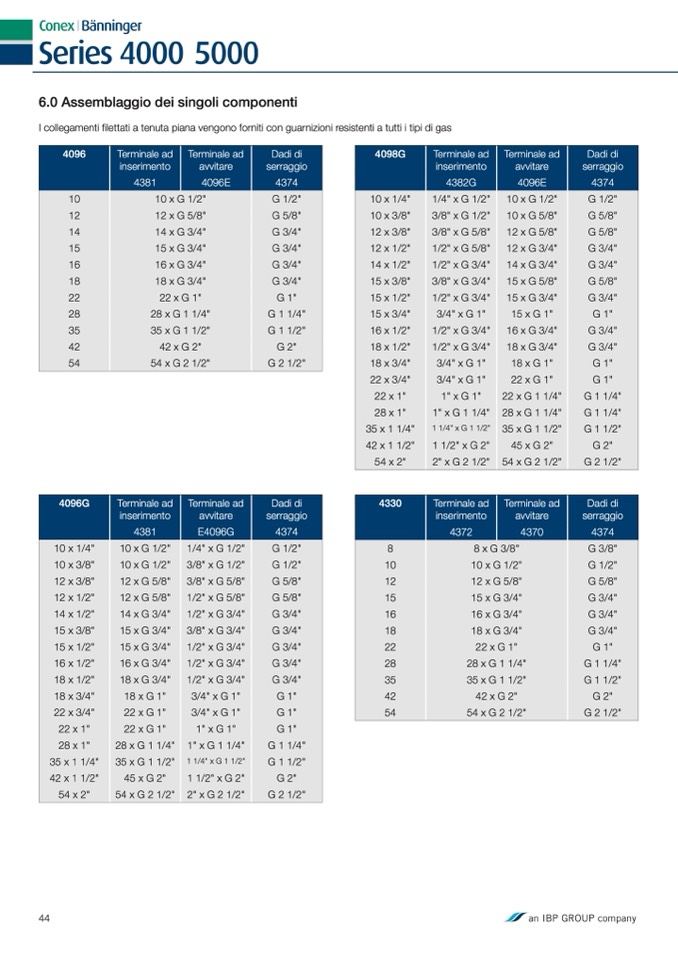 filettati a tenuta piana vengono forniti con guarnizioni resistenti a tutti i tipi di gas