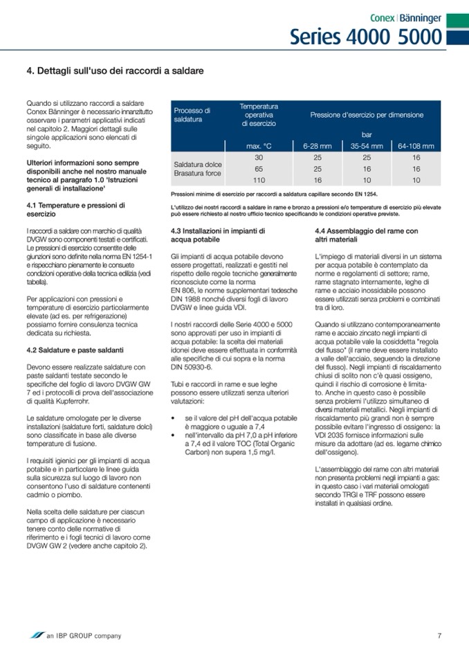 L'utilizzo dei nostri raccordi a saldare in rame e bronzo a pressioni e/o temperature di esercizio pi