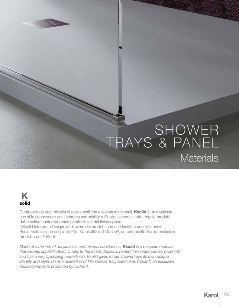 identity and style. For the realization of Filo shower tray, Karol uses Corian