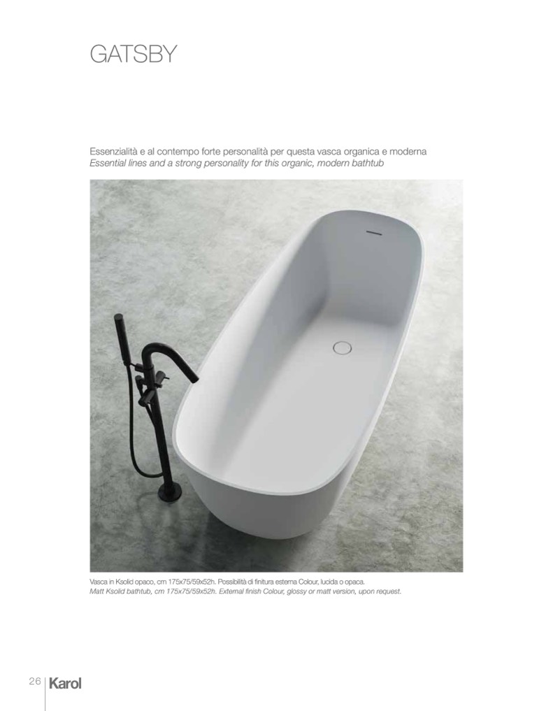 Matt Ksolid bathtub, cm 175x75/59x52h. External finish Colour, glossy or matt version, upon request.