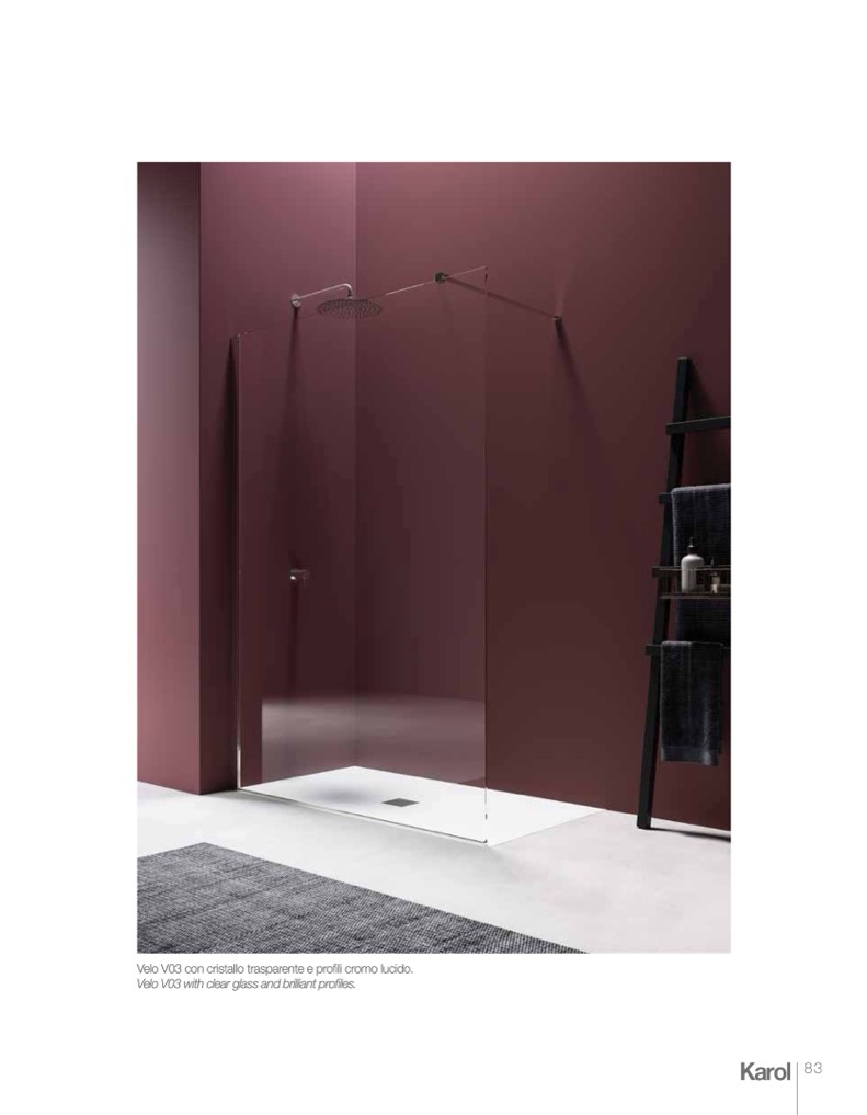 Velo V03 con cristallo trasparente e profili cromo lucido.