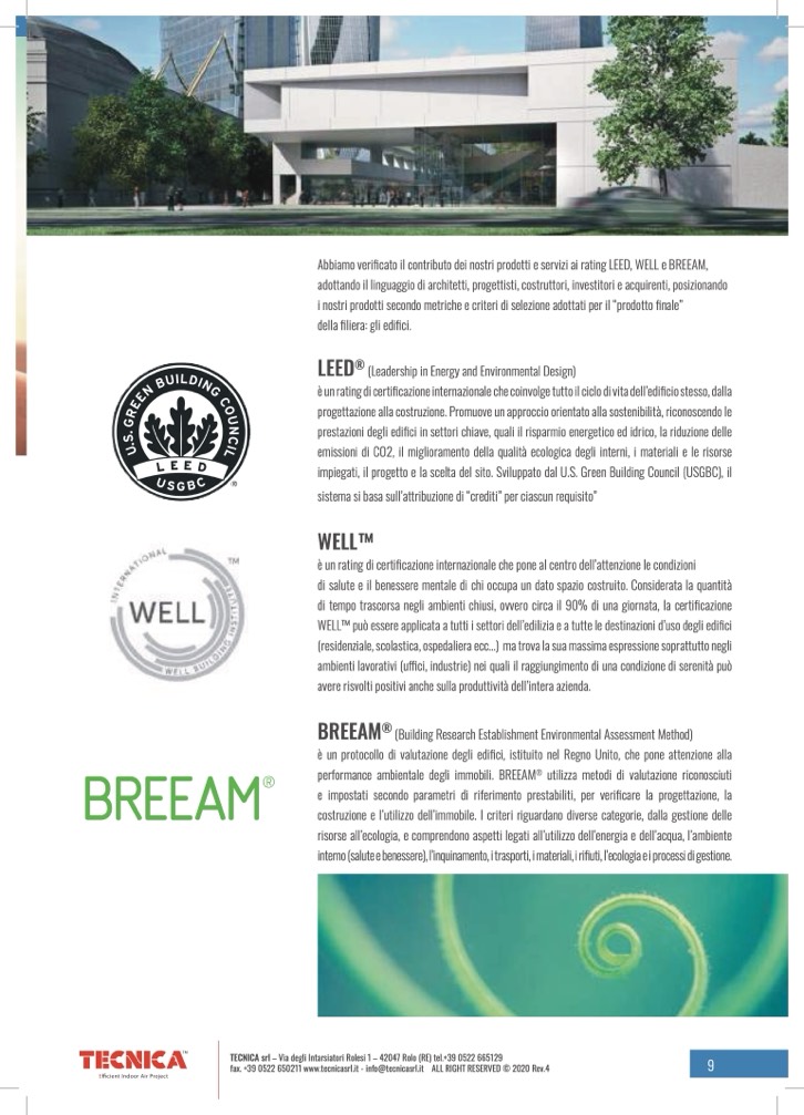 Abbiamo verificato il contributo dei nostri prodotti e servizi ai rating LEED, WELL e BREEAM,