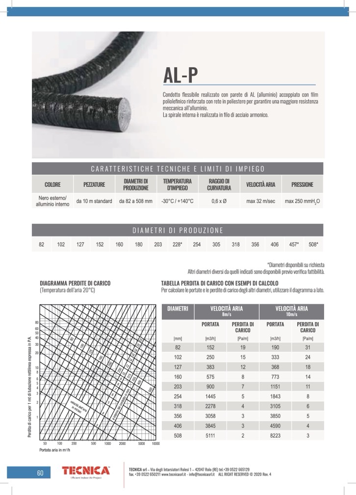 Condotto flessibile realizzato con parete di AL (alluminio) accoppiato con film