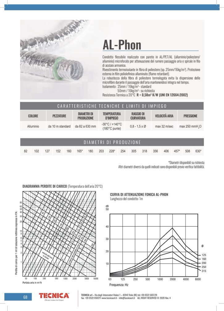 Condotto flessibile realizzato con parete in AL/PET/AL (alluminio/poliestere/