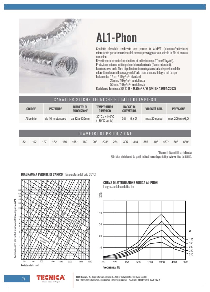 Condotto flessibile realizzato con parete in AL/PET (alluminio/poliestere)