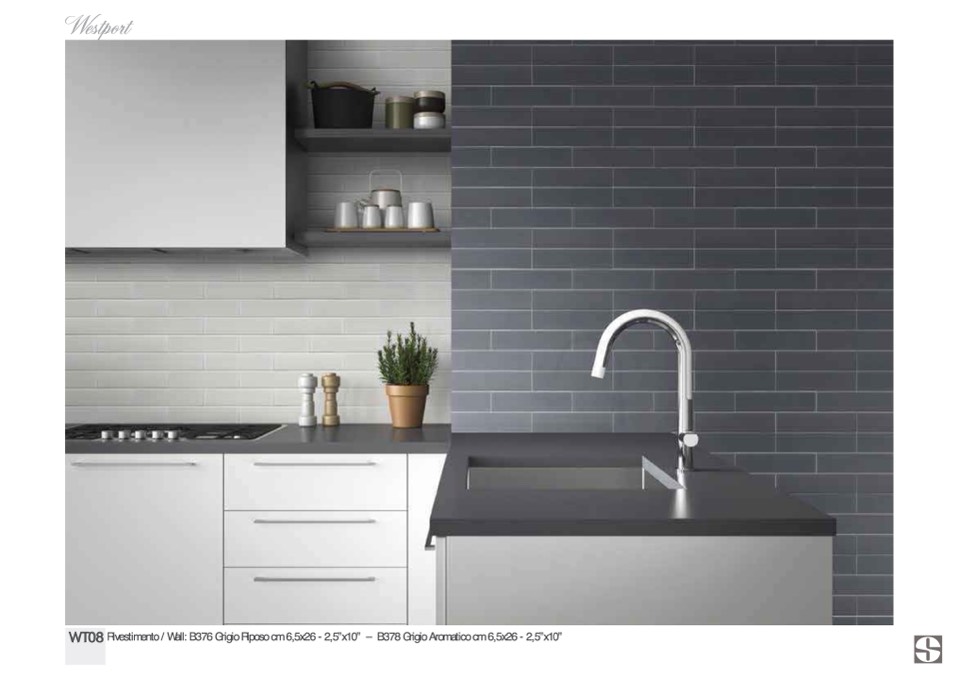 Rivestimento / Wall: B376 Grigio Riposo cm 6,5x26 - 2,5”x10” – B378 Grigio Aromatico cm 6,5x26 - 2,5”x10”
