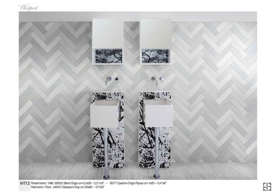 Rivestimento / Wall: B3002 Blend Grigio cm 6,5x26 - 2,5”x10” – B377 Quartino Grigio Riposo cm 1x20 – 0,4”x8”