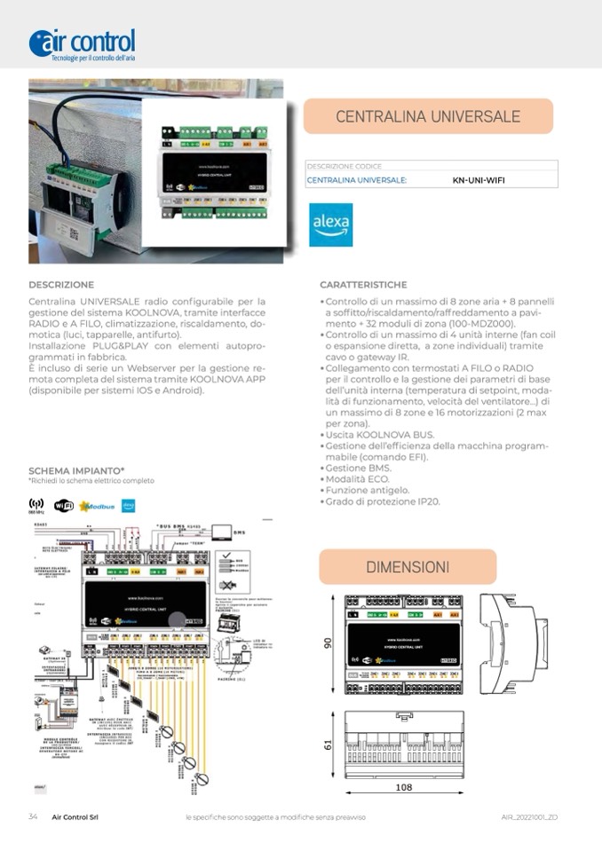 • Controllo di un massimo di 8 zone aria + 8 pannelli
